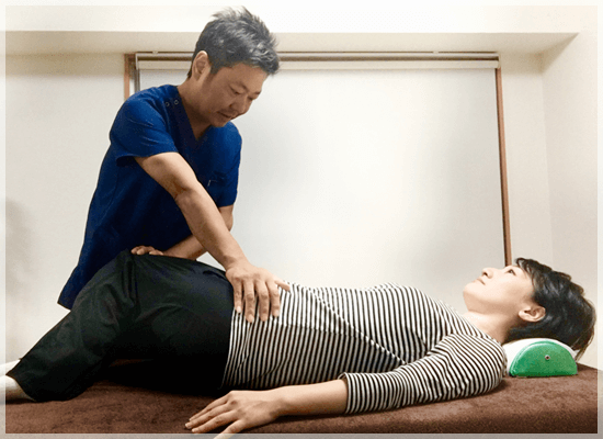 痛みの原因から痛みを消失させ、体のバラランスも調整していきます。こちらの方も痛みはなくリラックスして受けて頂けます。