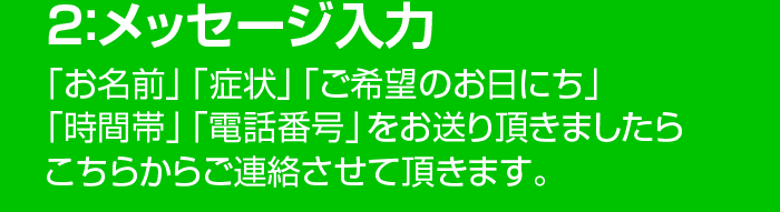そのためご希望の時間帯を事前に電話にて予約して頂いた後に来院していただくので、お待たせすることなくすぐに施術を開始することができます。