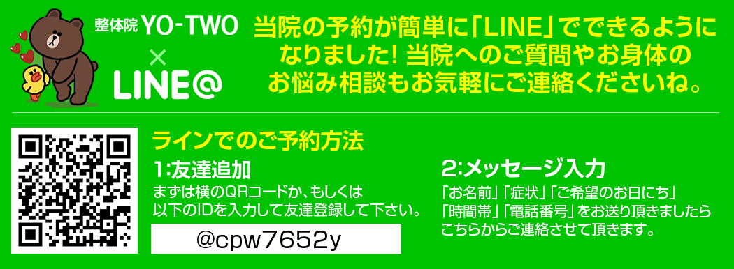 迷いなく「No!」と即答できたのであれば、今すぐ整体YO-TWOへお電話ください。