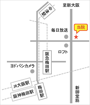 4グラン・アーモ(旧梅田玉姫殿)の向かって右隣が当院です。